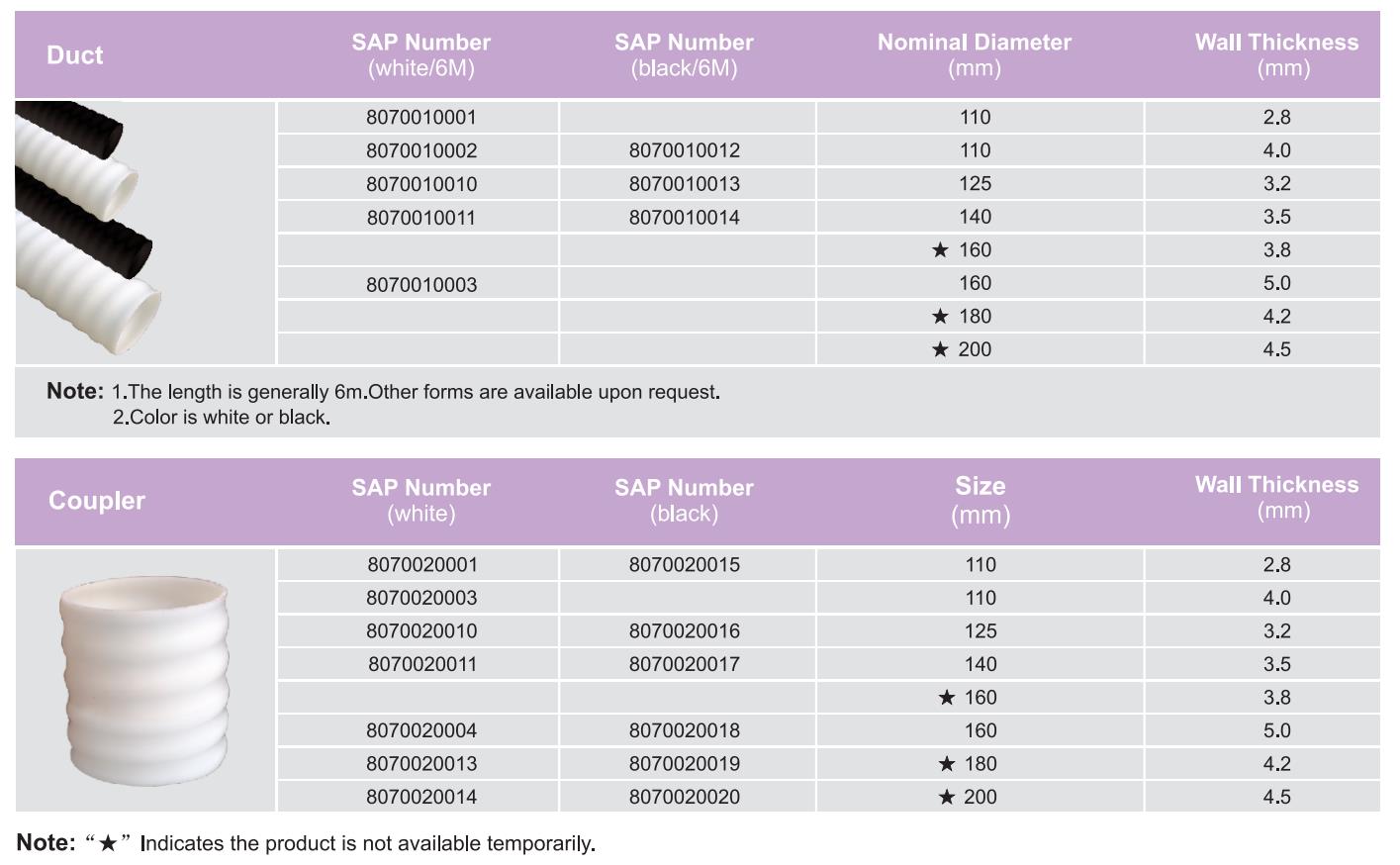 · High efficiency to wiring: The contact area of wires and duct is much less as the duct's structure is spiral, makes drawing easier.