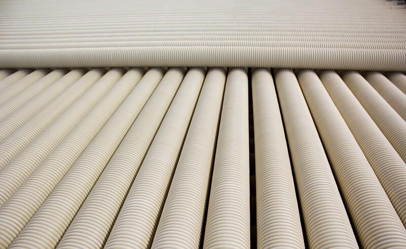 2、PVC-U双壁波纹管一般长度都在6米左右,所以直线距离内的接头很少,大大降低了渗漏概率,避免了对周围土壤和地下水的二次污染。